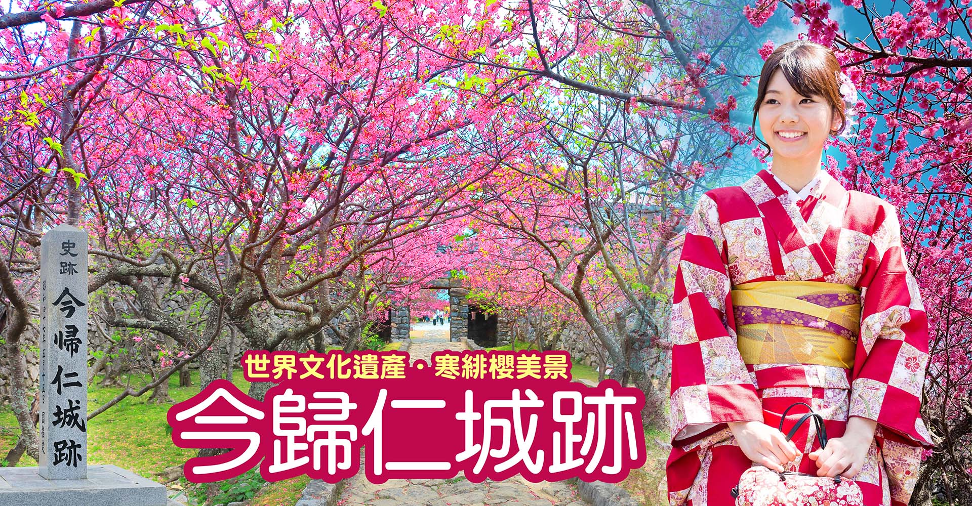 日本最早的櫻花就在沖繩,而沖繩的櫻花也是在日本本島少見的「寒緋櫻」(也稱作緋寒櫻)寒緋櫻,有著鮮豔的粉紅花色及吊鐘狀的外型,開花時則呈現低垂俯首之姿,宛如女子害羞的樣貌。被列為世界遺產的今歸仁城跡,就是其中一個知名的寒緋櫻名勝。